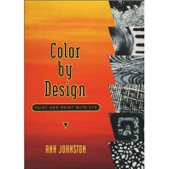 —ADVERTISEMENTS— Ann Johnston's book Color by Design Includes instructions for dye painting, printing, and stamping. The recipes are designed for Procion MX dyes but work equally well with Sabracron F dyes Country or region: USA Message: Hi Paula, I would like to silk paint and I have Sabracron F dyes. How should I mix them for painting, not dying. All the instructions I seem to find are for dying. Thanks for taking the time to help me in addition to building this excellent resource website. You can use Sabracron F dyes exactly like Procion MX dyes, which widens your sources of good recipes. The only real differences are that the Sabracron F dyes will stay good longer after being dissolved in water, and they like a little more warmth when reacting. Sabracron F dyes are fiber reactive dyes that contain one fluorine atom in their reactive section, as compared to Procion MX dyes which contain two chlorine atoms. It used to be that they were manufactured by Ciba, and so their 'real' name was Cibacron F, but Ciba has since sold their dyes to Huntsman Textile Effects, which renamed them the Novacron F dyes. Sabracron F is just the brand name that PRO Chemical & Dye repackages them under, so it stays the same regardless of changes in the manufacturer. For dye painting, you will mix your dye powders with water and some other chemicals. The amount of dye powder you use will depend on how dark you want your colors to be; they should look darker on the fabric, when the dye is wet, than you want the final color to be. You can mix anywhere from as little as half a teaspoon of dye powder per cup of liquid for a pale color, or as much as eight teaspoons of dye powder in order to get a deep dark black. For a medium color, use two teaspoons of dye powder per cup of dye paint. You can use the dyes in the colors in which you buy them, or mix intermediate colors by using more than one color of dye powder, or mix all of your colors, just as purchased, and later mix colors by combining your prepared dye paints. The water you use to mix your dye paints should not be hard water; if your water is hard, either add the water softener sodium hexametaphosphate, or use distilled water. (See my page, "Dyeing with hard water".) It is convenient to start by making up a batch of what we call "chemical water", enough for all of your different dye colors. Chemical water will stay good for several weeks after you make it, especially if you refrigerate it; discard it if it begins to smell like ammonia. To make chemical water, dissolve nine tablespoons of urea in one quart (or one liter) of water; add one teaspoon of Metaphos or another brand of sodium hexametaphosphate, and, if you will be using any heat (steam or microwaving) to set your dye later on, also add one teaspoon of Ludigol, which ProChem sells as Chem Flakes. (Ludigol helps to prevent heat from damaging the dyes by reducing them.) Meanwhile, if you will be thickening your dyes for painting, mix up some print paste, preferably starting several hours or the day before you want to begin painting, to allow the lumps in the alginate to disperse. You can make this yourself by dissolving the appropriate grade of the thickener sodium alginate in water, along with sodium hexametaphosphate, or you can buy ProChem's Print Paste Mix (SH for cotton and thick silks, F for fine silks) and use that. If you are going to use a watercolor effect in which the dyes are thin, rather than thickened, you can skip the print paste and just use the chemical water to mix your dye. Print Paste can be used at various thicknesses to give you different textures of paint, from slightly thickened to as thick as artists' oil paints. Thickened dye will spread less on the fabric. You can find ProChem's step-by-step ibstructions for mixing your dye powder with the chemical water and print paste on their page, "Direct Application using Sabracron F Reactive Dyes" [it's a PDF]. For more information on how to dissolve sodium alginate, see my page, "Sodium alginate, Superclear, and other dye thickeners". In order for the Sabracron F dyes to form a strong chemical bond with your fabric, you must add a pH-altering chemical, either soda ash or washing soda, in order to get it to react with cotton or other cellulose fibers, as well as with silk, or an acid, which works only for silk. If you are going to be heat-setting your dyes (which is not required), such as by steaming, then you can substitute baking soda (sodium bicarbonate) for the soda ash (sodium carbonate), because bicarbonate turns to carbonate when heated to high temperatures. For silk, you can use the same recipes as for cotton, or you can use the acid ammonium sulfate, instead of soda ash. Silk is a unique fiber that can be dyed with either soda ash or acid. You may prefer the ammonium sulfate for retaining the maximum amount of sheen on your silk, because acids are kinder to silk. Silk does very well with soda ash, unlike other protein fibers, such as wool, but soda ash tends to soften silk, and soda ash should not be left in silk for an extended period of time, longer than a day or so. You have more than one choice for how to include your pH-altering chemical with your dye. One popular method, similar to that used by tie-dyers, is to presoak your fabric in soda ash that has been dissolved in water. You can work with fabric that is still wet with the soda ash, or, when you use cotton, you can line-dry the soda-soaked fabric and then paint your dye paint onto it. This has the advantage that your dye mixtures will last for at least a week or two after you dissolved them in water, but only as long as no soda ash gets into them. Since your paintbrush or other tool will carry soda ash from the fabric you're painting back to your dye pot, be sure to pour out only enough of your dye to use within an hour or so, and replenish as necessary. Another way to get the soda ash, dye paint, and fabric together at once is to add the soda ash (or, if you will