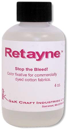 It is possible to improve the washfastness of direct dyes significantly. The old claims that soaking with vinegar or with salt will "set" the dye and prolong its life are false, but there is a type of commercial dye fixative that actually does work. This class of product is known as a cationic dye fixative; there are many brands, such as Retayne. (See my page, "Commercial Dye Fixatives".) You might be able to find Retayne at a local quilter's supply store, or possibly from some local fabric stores, but chances are that you'll need to buy it by mail-order. A couple of the many good sources are PRO Chemical & Dye in the eastern US, and Dharma Trading Company in the west; order from a company that is closer to you, for greater speed and economy in shipping, or order from whichever has other supplies that you need. Both of the companies I mention are also excellent sources for Procion MX dyes, at extremely reasonable prices. (For contact info for these and other dye retailers, see "Sources for Dyeing Supplies Around the World".)