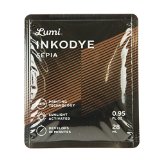 Inko-dye is a brand of solubilized reduced vat dye esters, as described above, which uses light rather than oxygen to 'fix' the dye, with a inspirationally wide variety of possible effects. Instead of being applied in an oxygen-free bath and being developed in the fabric by exposure to oxygen, Inkodyes are painted onto the fabric and then developed by light. Unlike the Setacolor fabric paints used in sun printing, Inkodyes are true dyes. (A dye actually itself attaches to the fabric; fabric paint includes a glue-like binder, which imparts a stiffer feeling to the fabric.) The process is somewhat difficult and more suited for an experienced dyer, rather than for a novice. The only retail source of Inkodye that I can find is Dharma Trading Company. There are many textile industry sources for Indigosol dyes, which are the same type of dye used in Inkodye, but these large companies tend to be less suitable for small-scale users such as textile artists.