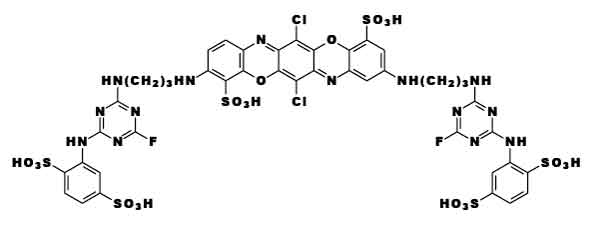Message: What is Cibacron FN? I think it's not the same reactivity as cibacron F. Is it right? Cibacron FN and Cibacron C dyes are bifunctional monofluorotriazine-sulfatoethylsulfone dyes. This is different from the Cibacron F dyes which have only the monofluorotriazine reactive groups. Here is the structure of a Cibacron F dye, Colour Index Reactive Blue 204: ![]() (From R.R. Berger, 2005 [PDF].) As you can see, this Cibacron F dye contains two monofluorotriazine reactive groups per dye molecule. (Please help support this web site. Thank you.) [Corrected and updated January 21, 2008] Tuesday, July 20, 2004 acne cream causes mysterious bleach spots on clothing Name: Judi