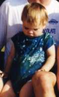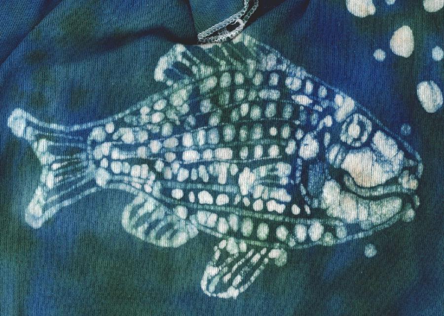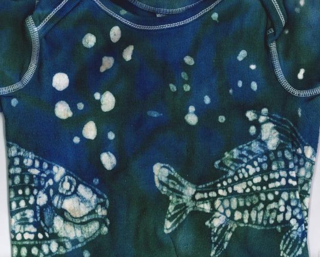 On the next page is another one-piece garment I made for my younger son, Peter, with two different hand-drawn batiked cats. Keep going and you'll find more examples of my work, and ultimately instructions on dyeing and information on sources for materials and books.