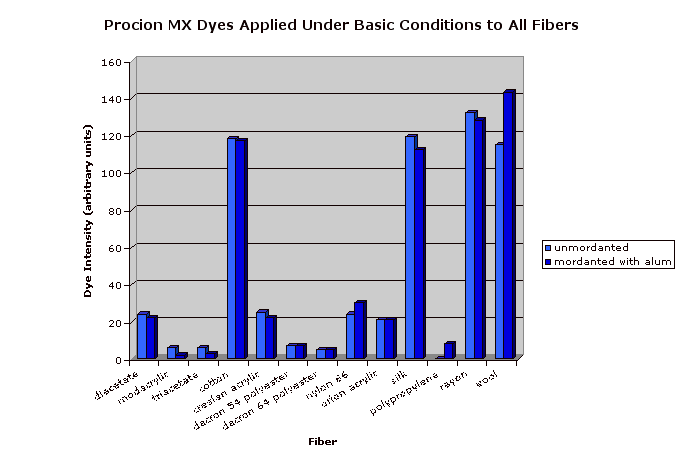 Mordanting made no difference at all to the performance of Procion MX dye.