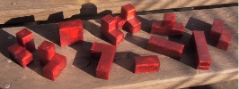 squares, when viewed from above. There are also rules (or rather suggestions) for solitaire play, and the wise suggestion that two players should each play two colors. It's more challenging and fun that way. The game is supposed to mimic the elaborate stone buildings of the ancient Incas, so the four structures to be built reflect their architecture in shape. The pieces are well constructed, and the turntable is exceptionally steady, so that buildings do not fall as you turn it to get a better look. (We bought our Rumis game from Amazon.) Posted: Sun - January 1, 2006 at 04:59 PM |